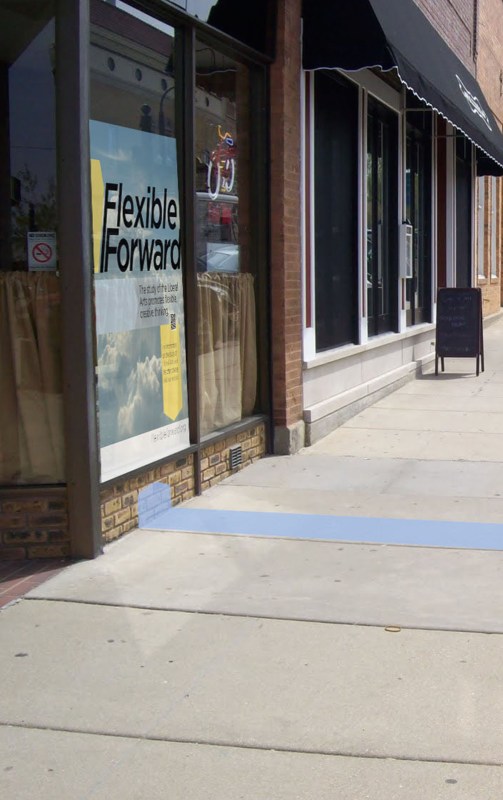 This large-scale banner is geared towards the busy pedestrian. I generated a QR code for this one, so those with smartphones are directed to FlexibleForward.org.